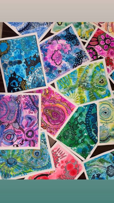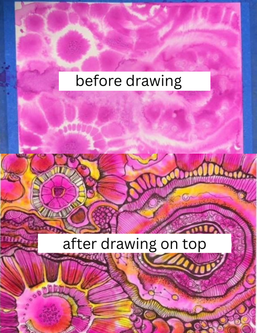 After you’re finished with your watercolor piece, add line art to show the biomorphic elements!